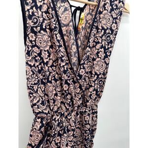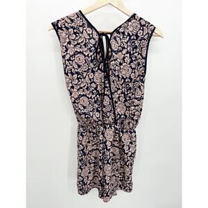 Always Pink Blue Printed Surplice V-Neck Tie Back Romper Women's Size Medium M