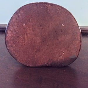 Brass plaque on front of wood base has a couple dents, when looking closely.