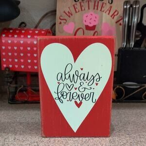 Always and Forever Red Wooden Valentine's Day Heart Love Wall Tabletop Decor