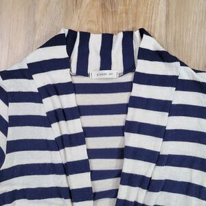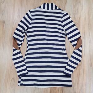 🔹️🔺️Always Me Blue & Cream Striped Open Front Cardigan w/Elbow Patches Medium