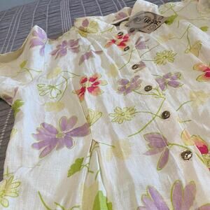 Aly Wear Vintage Made in USA Linen Floral Maxi Dress size Medium Cottage Prairie