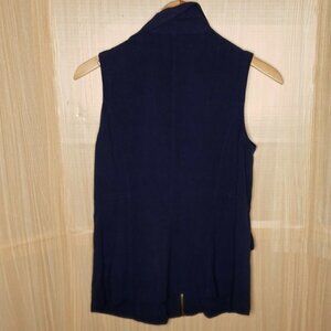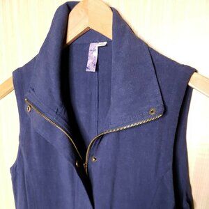 Alya women’s blue linen blend full zip long vest small. Good condition. Measurements are: 28” from shoulder to hem, and 18” from armpit to armpit.