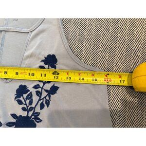 Alya Blue Sleeveless Peplum Tank Top With Navy Embroidered Floral Design Size S