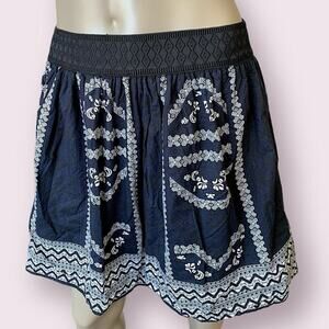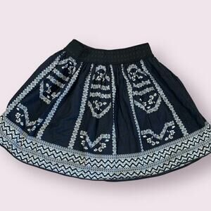 Alya Bohemian Flare Circle Skater Mini Skirt Pullon Size S Black and White Aztec