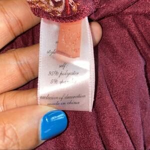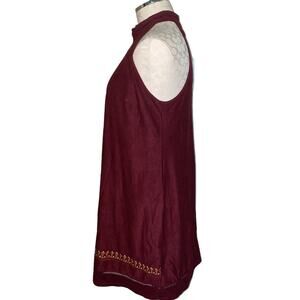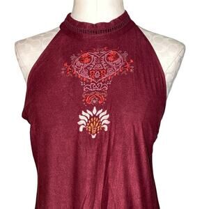 Alya Boho Embroidered Halter Faux Suede Mini Dress Size Medium Burgundy
