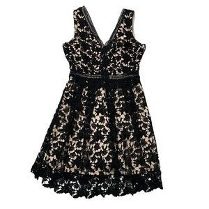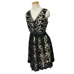 Alya Dress Women's Small Black Lace A-Line Sleeveless V-Neck Cut Out