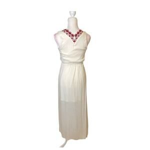 Alya Embroidered Maxi boho Dress v neck Sleeveless ivory Sz Small