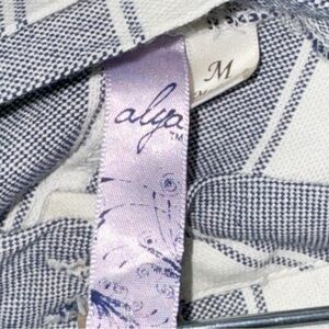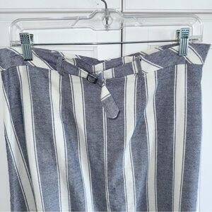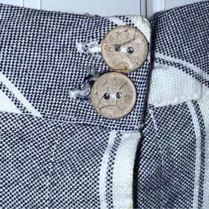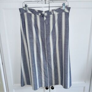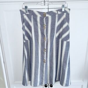 Alya Fit and Flare Navy Striped Cotton Midi Skirt Sz Medium Button Front