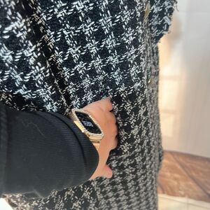 Alya Franchesca Black White Long Lightweight Tweed Coat Size Medium