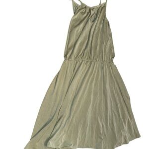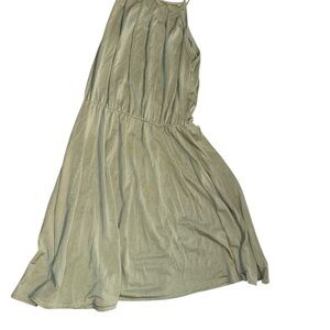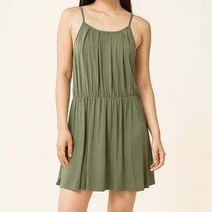 The Alya sundress showcases a vibrant green color with a tiered mini-length skirt, perfect for casual occasions. Its sleeveless design and halter neckline offer a chic and breezy style, making it ideal for warm weather. The dress's flowy silhouette ensures both comfort and elegance, making it a versatile wardrobe staple.