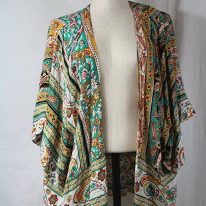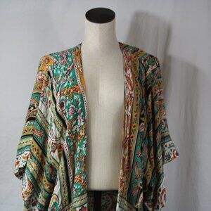 Alya Kimono Vest Multi Color Open Front Cover Up Shrug Boho Size Small Rayon