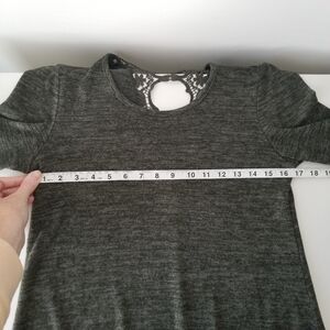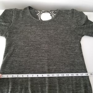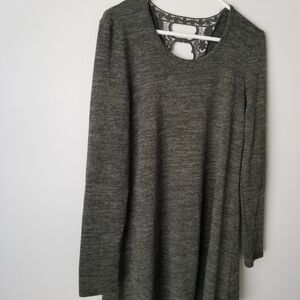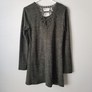 Gently used Alya knit long sleeve mini dress in a size Small. Color is a mix of gray and olive green.