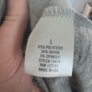 Good pre-loved condition. Minimal amount of pilling throughout (see last picture). Made in the USA! Polyester, rayon, and spandex blend. Size large. Make me an offer!