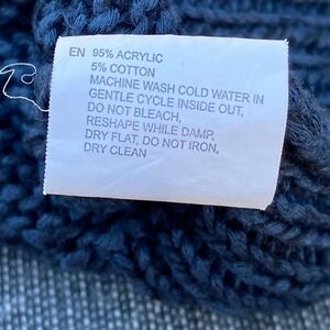 Francessca Alya Navy Blue Cold Shoulder Long Sleeve Knit Top/Sweater. Size Medium. Excellent Pre-Owned Condition! Loose cable knit with a unique back opening. Ships from a smoke and pet free home.