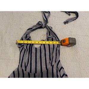 Alya Navy White Striped Maxi Dress M Handkerchief Hem Tie Front Spaghetti Strap