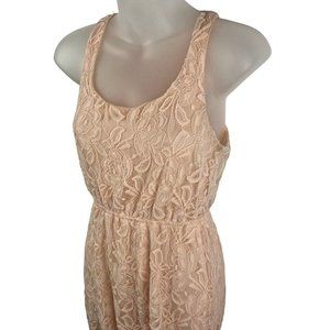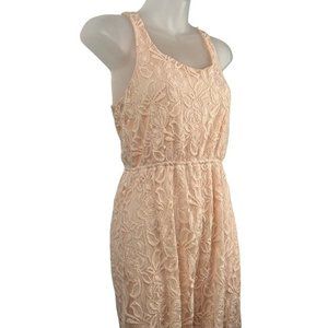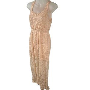 Alya Peach Sleeveless Lace Lined Split Side Cinched Waist Maxi Dress Size Small
