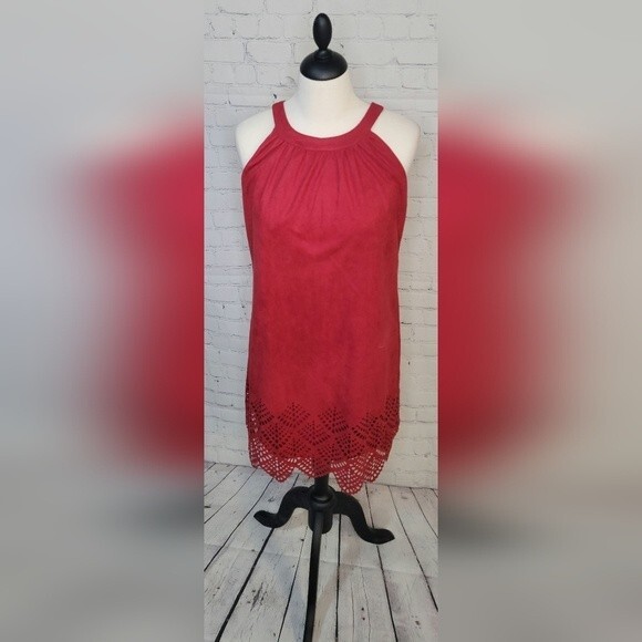 Alya Red Dress size Sm Faux Suede Sleeveless Shift Keyhole in back