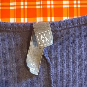 Elegant asymmetrical dress with V-neck. Long sleeves and ribbed texture.