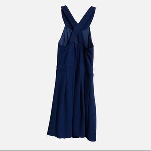 Alya Sleeveless Knit Criss Cross Back Halter Embellished Navy Midi Dress. Size S