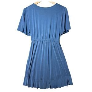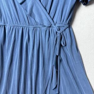 Alya V-Neck Wrap Dress Ruffle Blue Short Sleeve Womens Size Medium