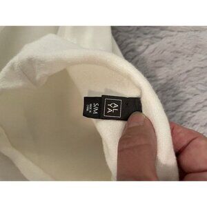 Alya Women’s Cream Mock Neck Poncho Sweater S/M Soft Knit Oversized with Pockets