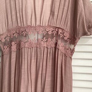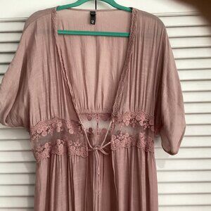 Alya Womens Mauve Maxi Dress Duster With Lace Trim & Drawstring Waist L/XL Beach