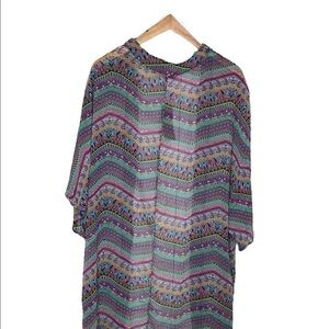 Alya Womens Size S Swimsuit Cover Up Open Front Chevron Print Sheer Hi Lo NWT