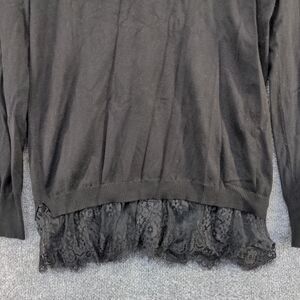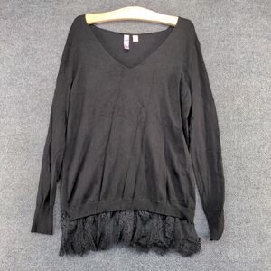 Alya Women's Tunic Sweater Black Large Long Sleeve Lace Hem Rayon V-Neck