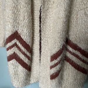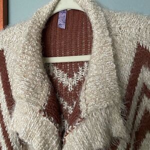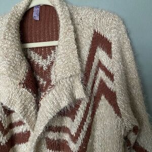 Alya eyelash open cardigan sweater size medium in great condition. Side pockets, collar. Armpit to armpit is approximately 20” flat. Length shoulder to hem is 36”