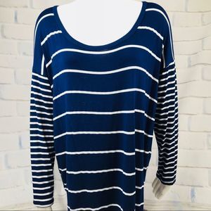 Alya striped navy blue scoop neck pullover top - LRayon, poly, spandex. Good condition, some pilling.