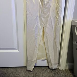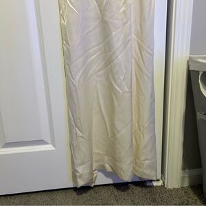 This white slip dress features a sleeveless design with delicate spaghetti straps and a sweetheart neckline, perfect for a bride, prom, or special event. Its minimalist style and luxurious fabric create an elegant silhouette that flows gracefully to the floor.