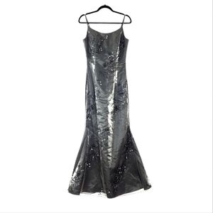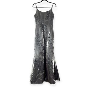 Alyce Design metal grey beaded overlay mermaid/ trumpet evening gown sz 10
