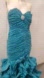 Alyce designs Alyce Aqua blue Blue jeweled Ruched Bodice Strapless Mermaid Ruffles Maxi Dress Gown PROM Party size 4