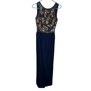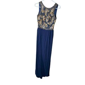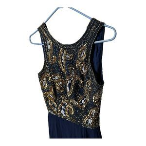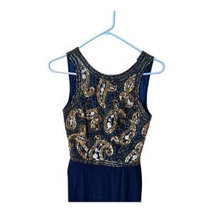 Alyce Designs Blue Gold White Beaded Sequin Sleeveless Evening Prom Dress Sz 6