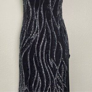 Alyce Designs vintage 80s sequin black asymmetrical sleeveless midi dress gown