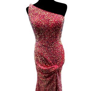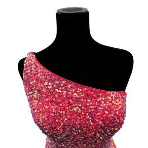 Alyce Paris One Shoulder Prom Dress Front Slit Sequin Lt. Watermelon Size 10 New
