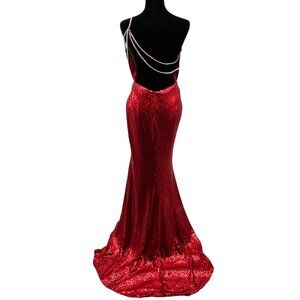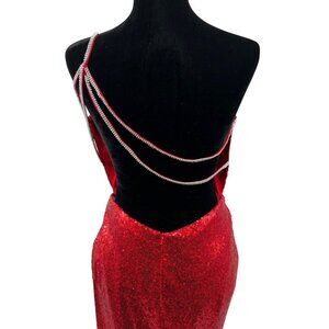 Alyce Paris One Shoulder Sequin Gown Open Back Red Size 12 New