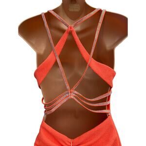 Alyce Paris Orange Textured Rhinestone Strappy Homecoming Prom Dress 2