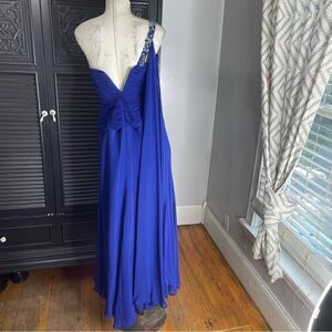 Alyce Paris Royal Blue Prom Pageant Formal Beaded Rhinestone Cape Dress 4