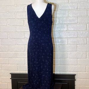 Midnight blue dress with stellar patterned sparkly embellishments make this THE evening wear!
