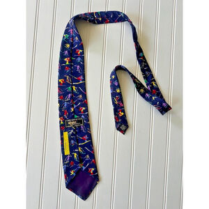 Alynn Neckwear Men's Tie "Downhill" 100% Silk 3.5" Blue Ski Skiier Snow Outdoor