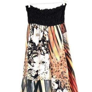 Alysi Strapless Boho Maxi Dress Size 6 Smocked Bodice Silk Patchwork Design