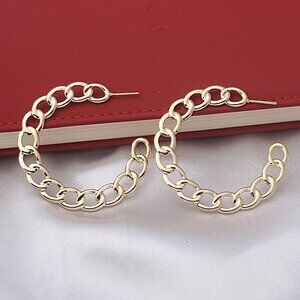 Alyssa Leanna Gold Stationary Link Design Hoop Post Earrings Gift Packaged