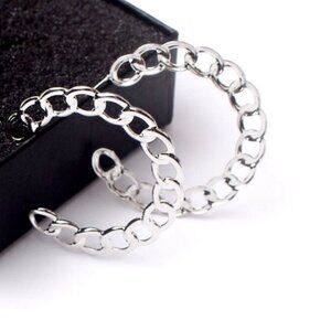 Alyssa Leanne Silver Stationary Link Design Hoop Post Earrings Gift Packaged