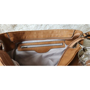 Vegan Hobo Handbag 3 Sections Zip Closure Camel Tan 9" Drop