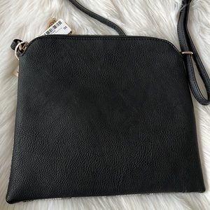 Alyssa brand crossbody purse. Vegan. Black with black/brown plaid on front. Brand new with tags.
