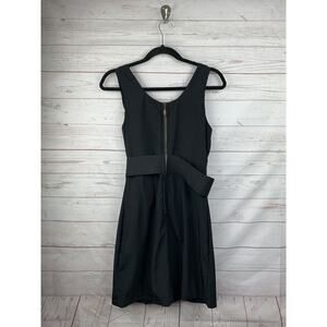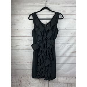 Alythea Dress Womens Medium Black Ruffle Front Black Belted Waist Zip Back LBD