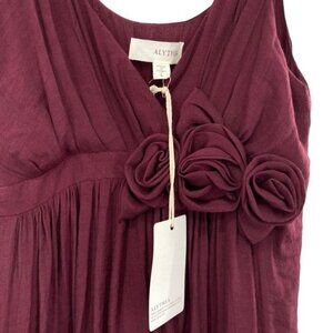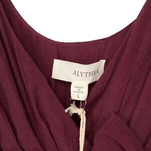 Alythea ModCloth Babydoll Cocktail Party Dress New with tags. Size large. Wine purple red color. Chiffon flower detail. Side zip closure. Fully lined. Laying flat measurements: 35” long, 19” across armpit to armpit. 17” across waist.