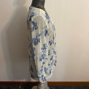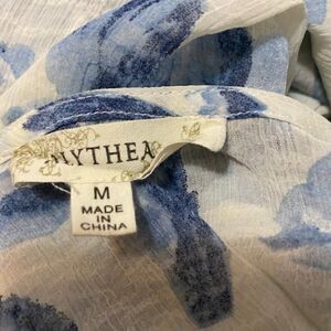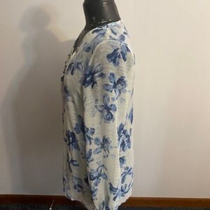 Alythea Blue, White Floral top, size Medium (100% Polyester)