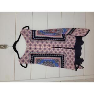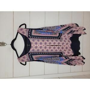 Alyx 0X navy blue tank top with bohemian print sheer overlay